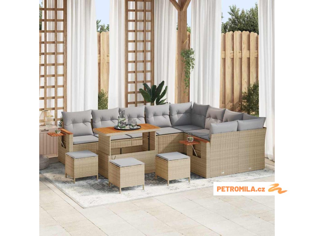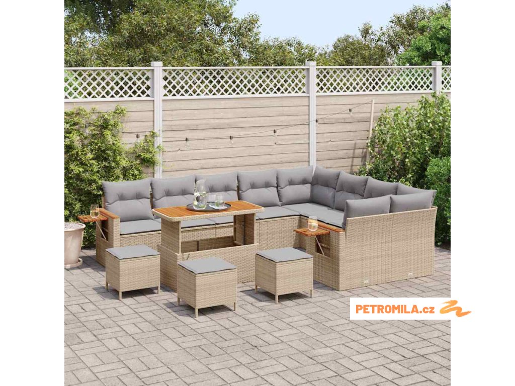 Sada zahradních pohovek s polštářem 13 pcs Béžová Poly ratan