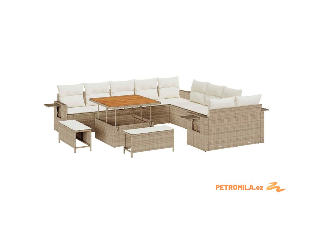 Sada zahradních pohovek s polštářem 13 pcs Béžová polyratan