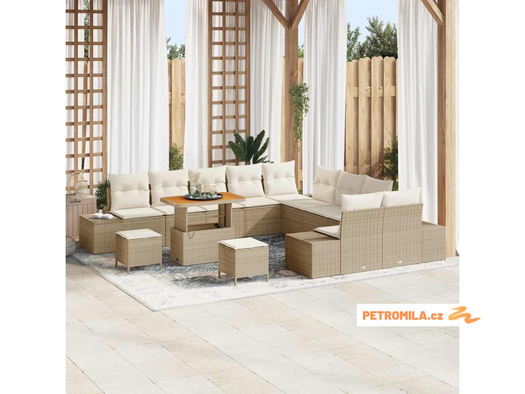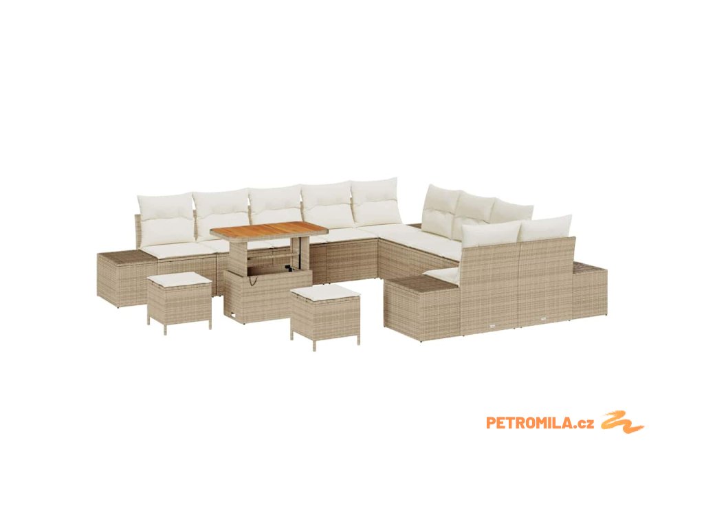 Sada zahradních pohovek s polštářem 13 pcs Béžová polyratan