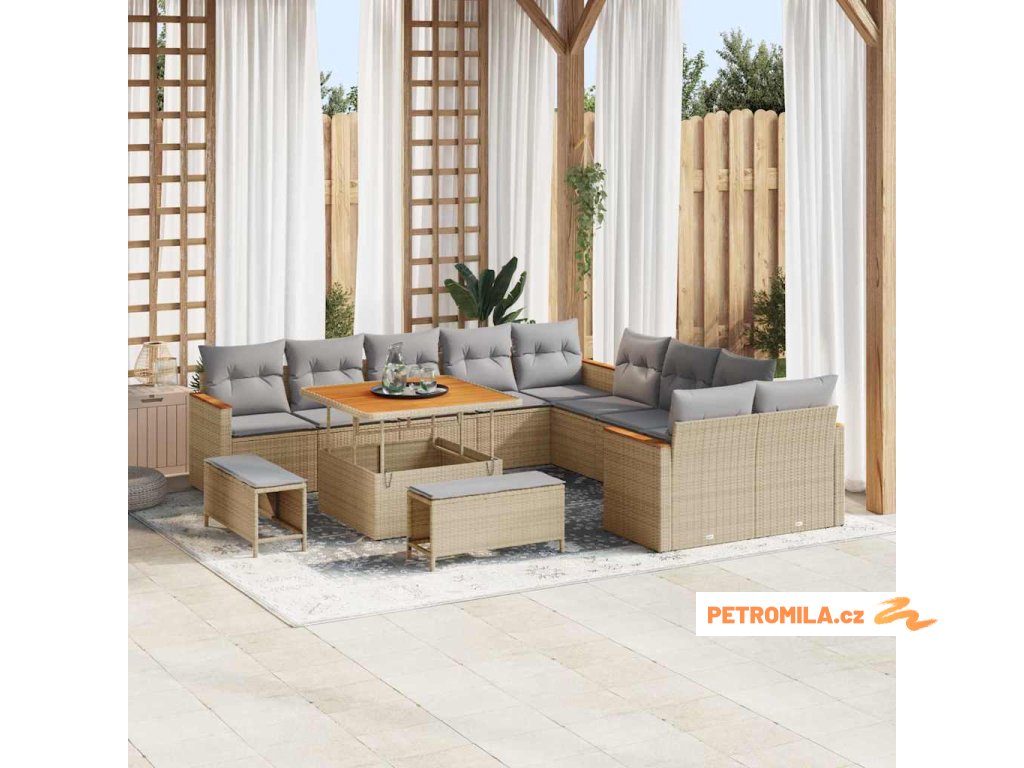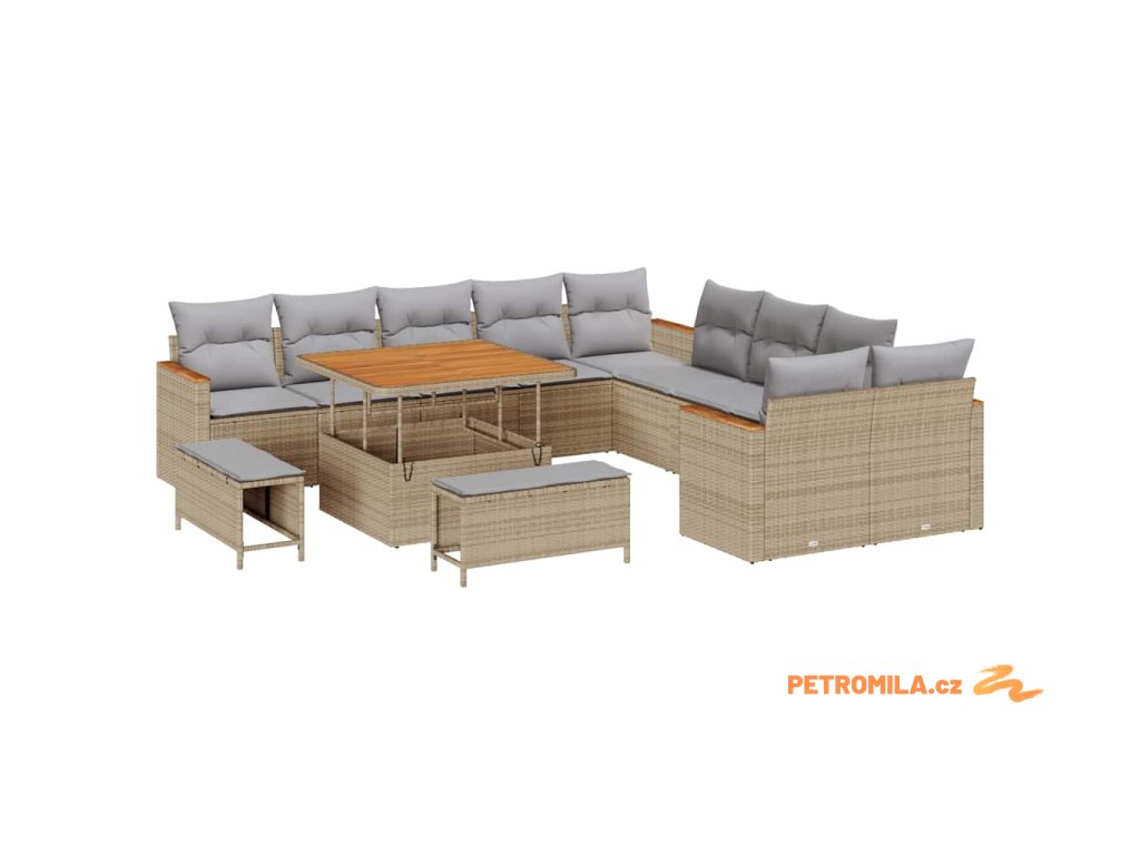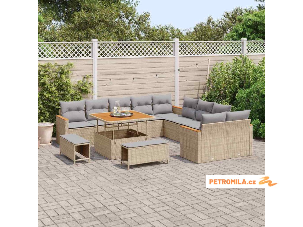 Sada zahradních pohovek s polštářem 13 pcs Béžová polyratan
