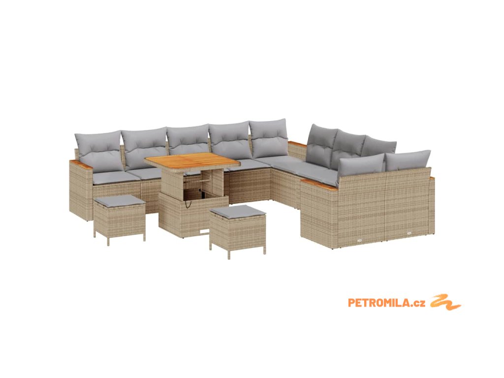 Sada zahradních pohovek s polštářem 13 pcs Béžová polyratan