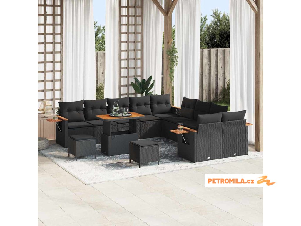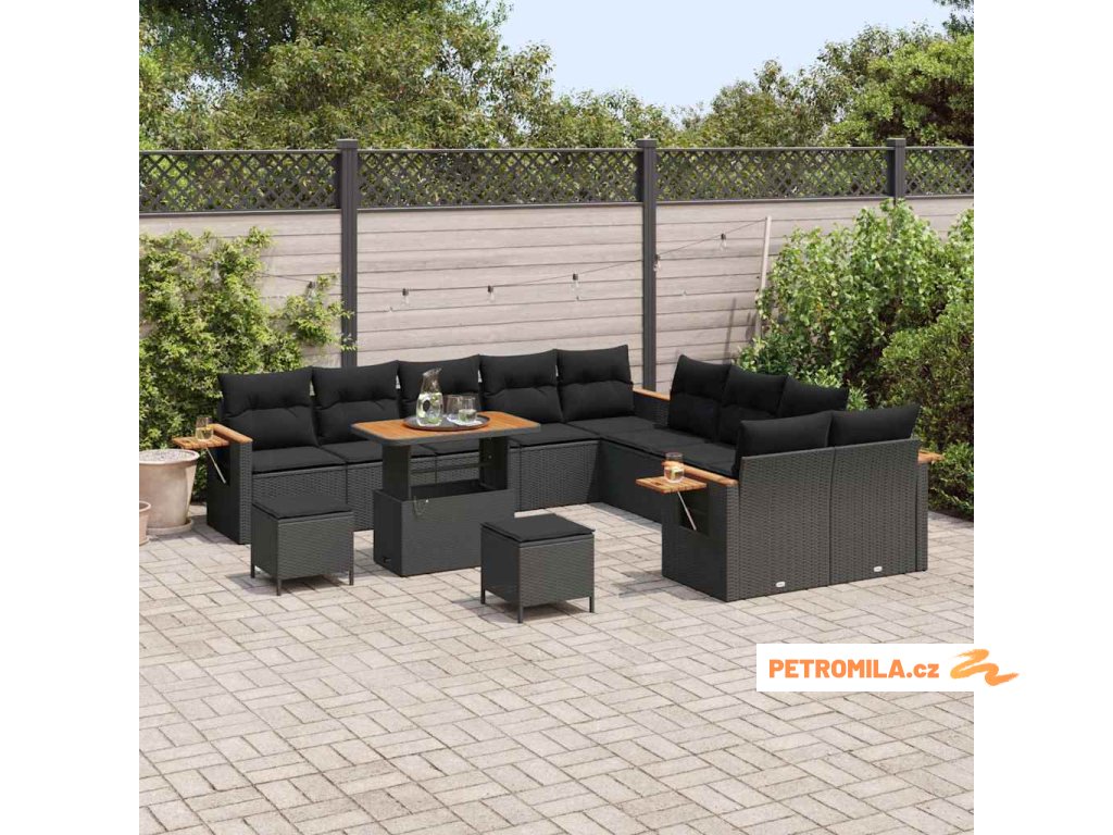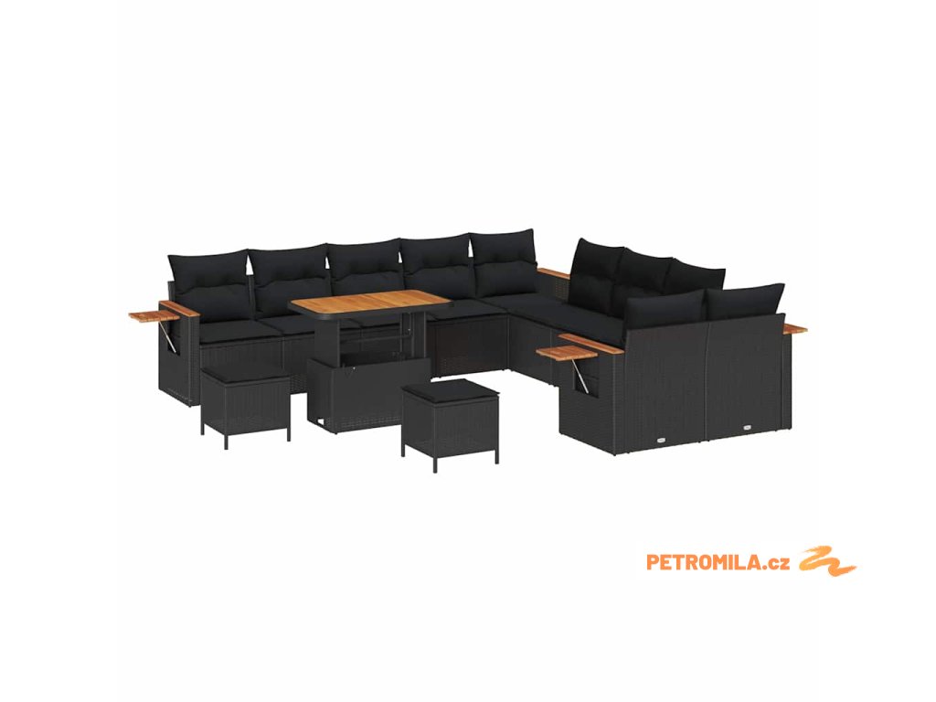 Sada zahradních pohovek s polštářem 13 pcs Černá