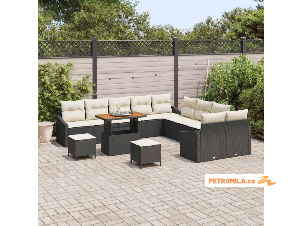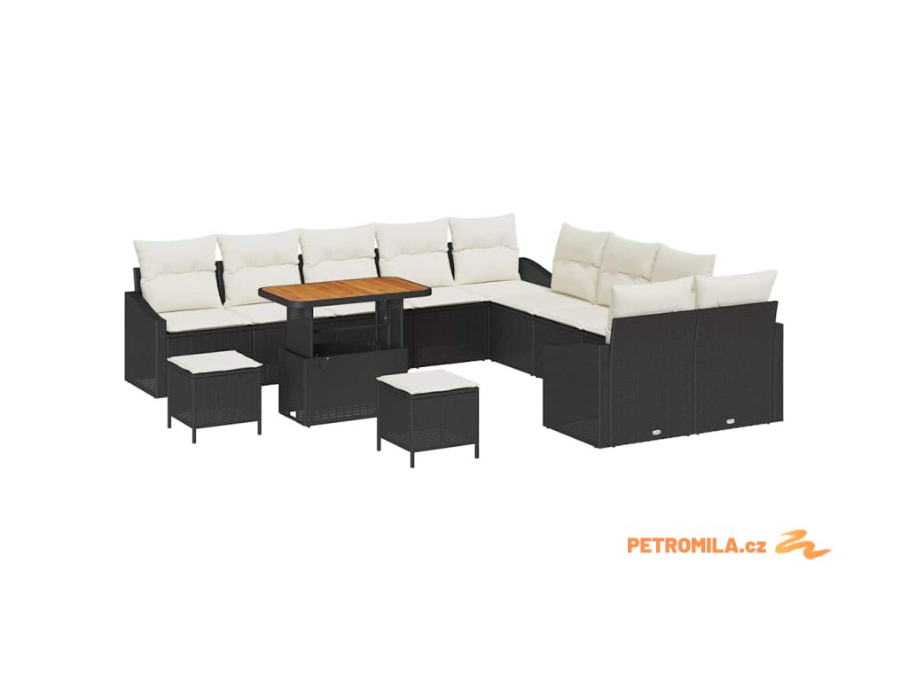 Sada zahradních pohovek s polštářem 13 pcs Černá a krémová
