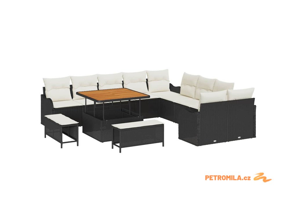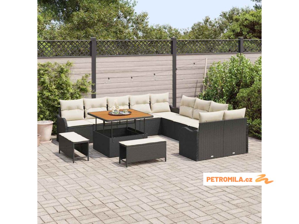Sada zahradních pohovek s polštářem 13 pcs Černá a krémová