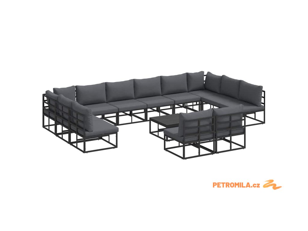 Sada zahradních pohovek s polštářem 13 pcs Černá Hliník