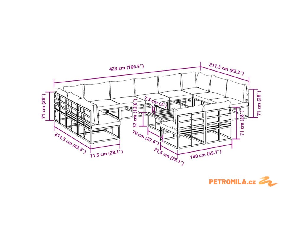 Robustní hliníkový rám Sestrojený z vysoce kvalitního hliníku, tato zahradní souprava pohovek má práškový povrch pro dodatečnou ochranu proti rzi a korozi. Hliníkový materiál zajišťuje lehkou, ale silnou konstrukci, což umožňuje snadné manévrování bez ztráty na trvanlivosti. To z něj činí dokonalý kus nábytku pro vaši terasu nebo zahradu a slibuje roky používání bez opotřebení. Pohodlné polštáře Sada obsahuje venkovní polštáře odolné proti povětrnostním vlivům vyrobené z textilenu, což zajišťuje pohodlný zážitek při sezení. Tyto polštáře jsou navrženy tak, aby odolávaly různým povětrnostním podmínkám, zatímco odnímatelné kryty se zipem usnadňují čištění a údržbu. Užijte si pohodlí a praktičnost při každém použití. Modulární design Nabízející mimořádnou flexibilitu, tato modulární zahradní souprava pohovek vám umožní přizpůsobit uspořádání podle vašeho prostoru nebo příležitosti. Ať už hostíte velkou oslavu nebo si užíváte klidný večer venku, modulární design se hladce přizpůsobí vašim potřebám a dodá vašim zahradám jak styl, tak užitečnost. Estetická přitažlivost Dokončeno v elegantní černé s antracitovými polštáři, tato zahradní sada zvyšuje venkovní dekor s jejím minimalistickým moderním designem, vhodným pro různé styly zahrady a terasy. Její estetika kombinuje funkčnost a eleganci, vytvářejíc lákavé venkovní útočiště. Snadná údržba Aby tato zahradní souprava zůstala v dokonalém stavu, občasné čištění vodou a mírným čisticím prostředkem stačí. Uložte polštáře uvnitř nebo použijte voděodolný kryt během nepříznivého počasí, abyste uchovali jejich vzhled. Tyto jednoduché pokyny pro údržbu zajišťují dlouhověkost a zachovanou krásu.- Barva: Černá