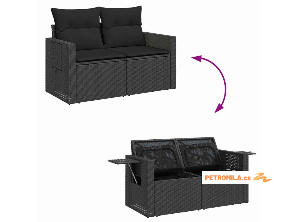 Sada zahradních pohovek s úložištěm 11 pcs Černá Poly ratan