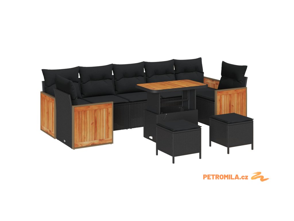 - Materiály: Tento set je z poly ratanu, což je lehký, ale pevný materiál, a přírodní akáciové dřevo na povrchu dodává na eleganci. Je odolný proti různým počasím, takže zůstane hezký a komfortní.