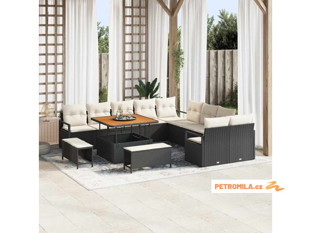 Sada zahradních pohovek s polštářem 13 pcs Černá polyratan