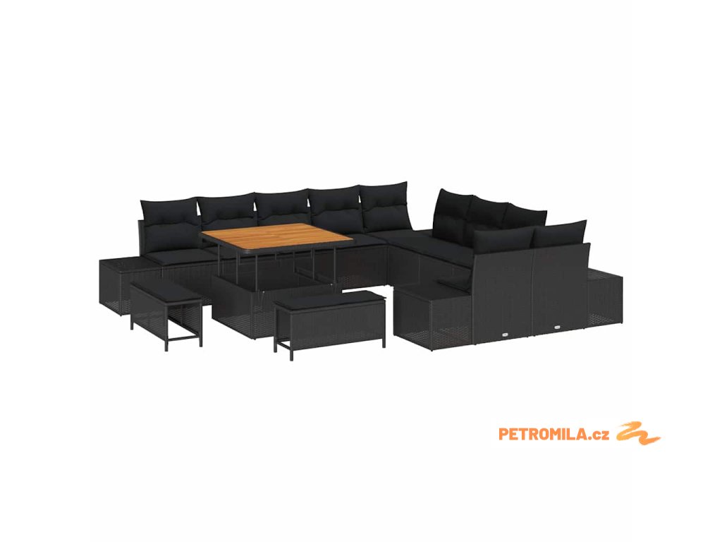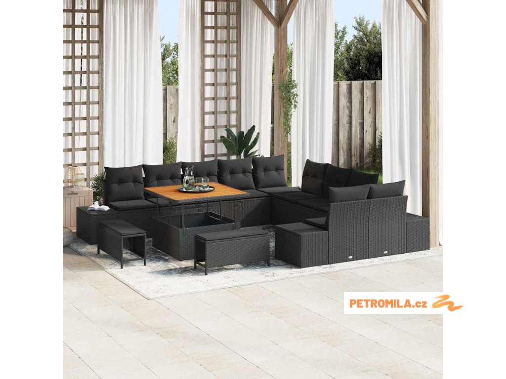 Sada zahradních pohovek s polštářem 13 pcs Černá polyratan