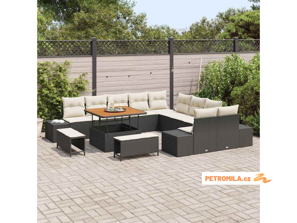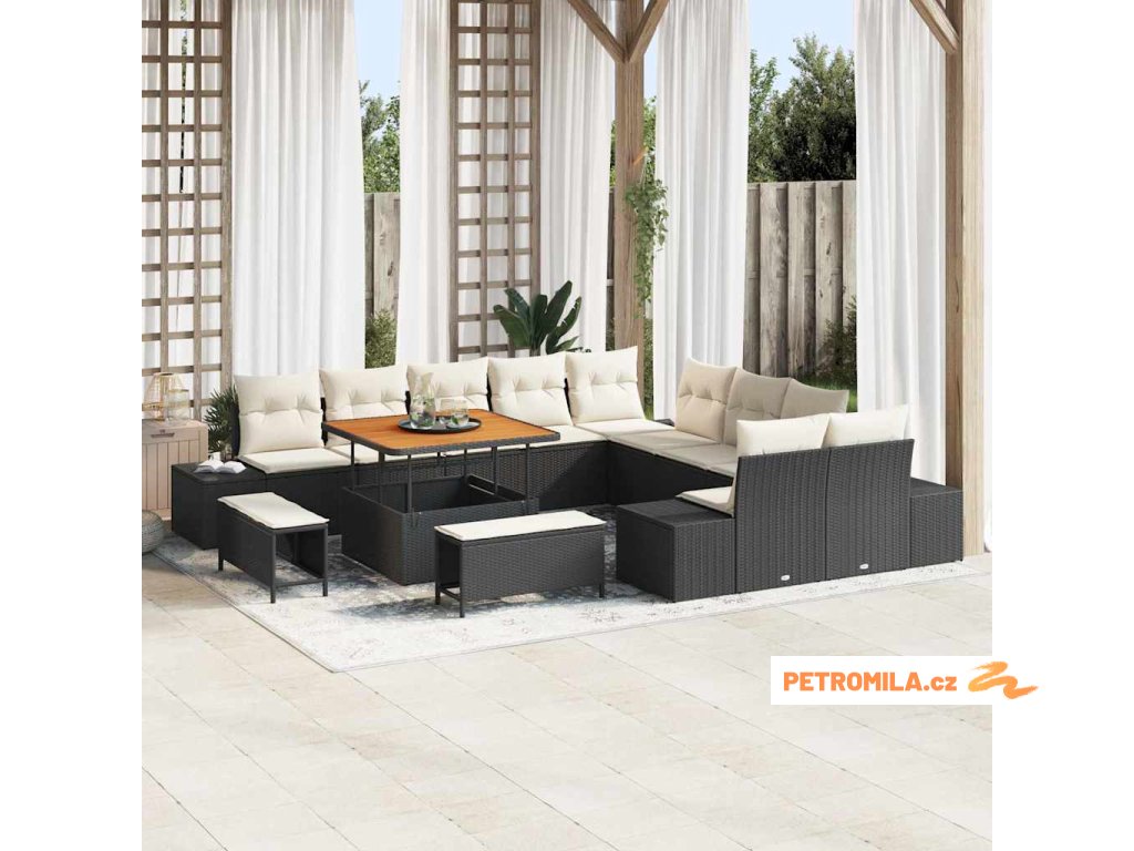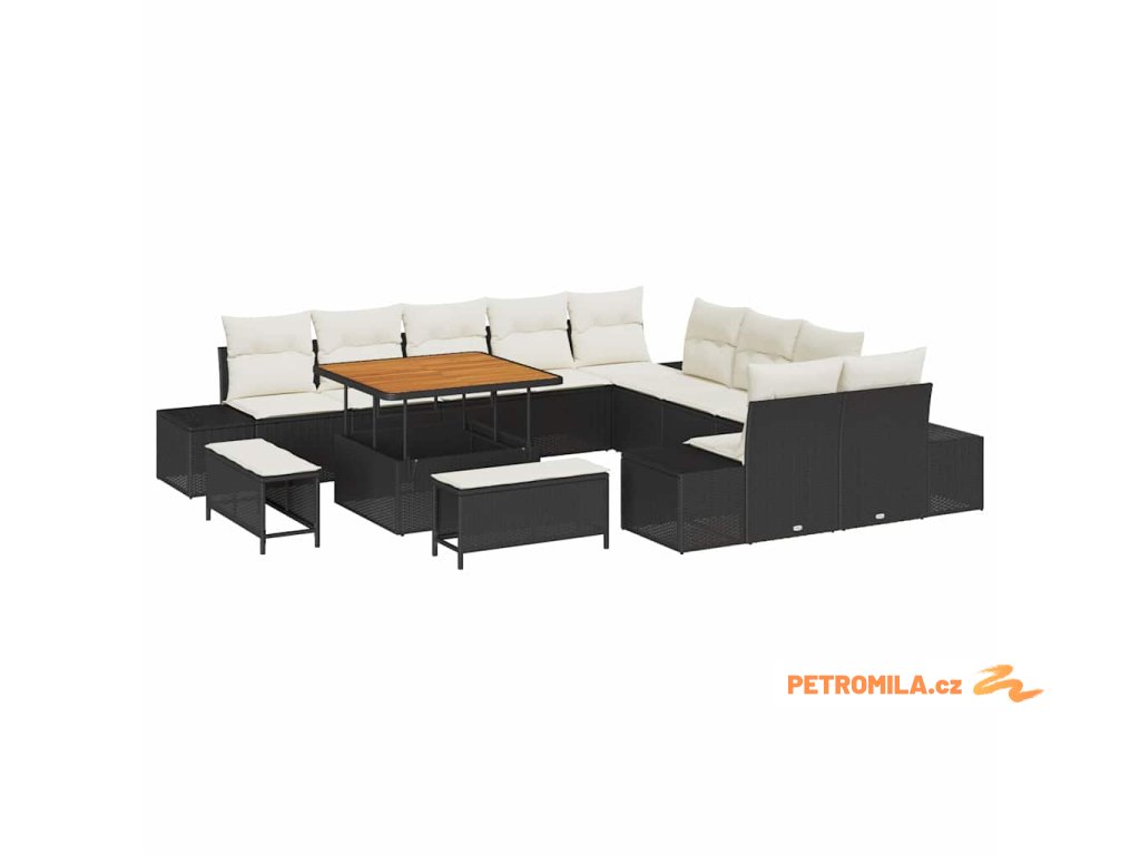 Sada zahradních pohovek s polštářem 13 pcs Černá polyratan