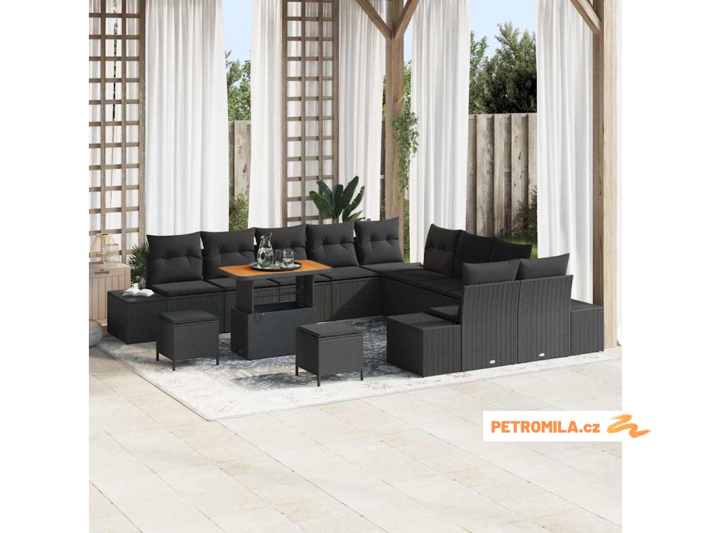 Sada zahradních pohovek s polštářem 13 pcs Černá polyratan