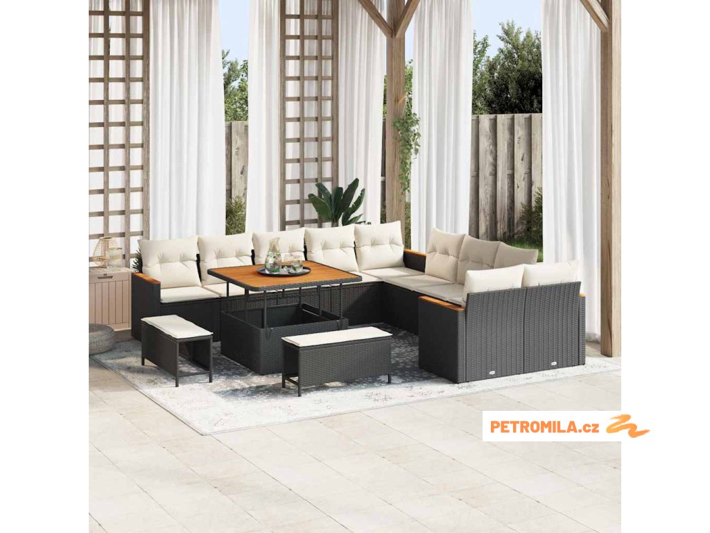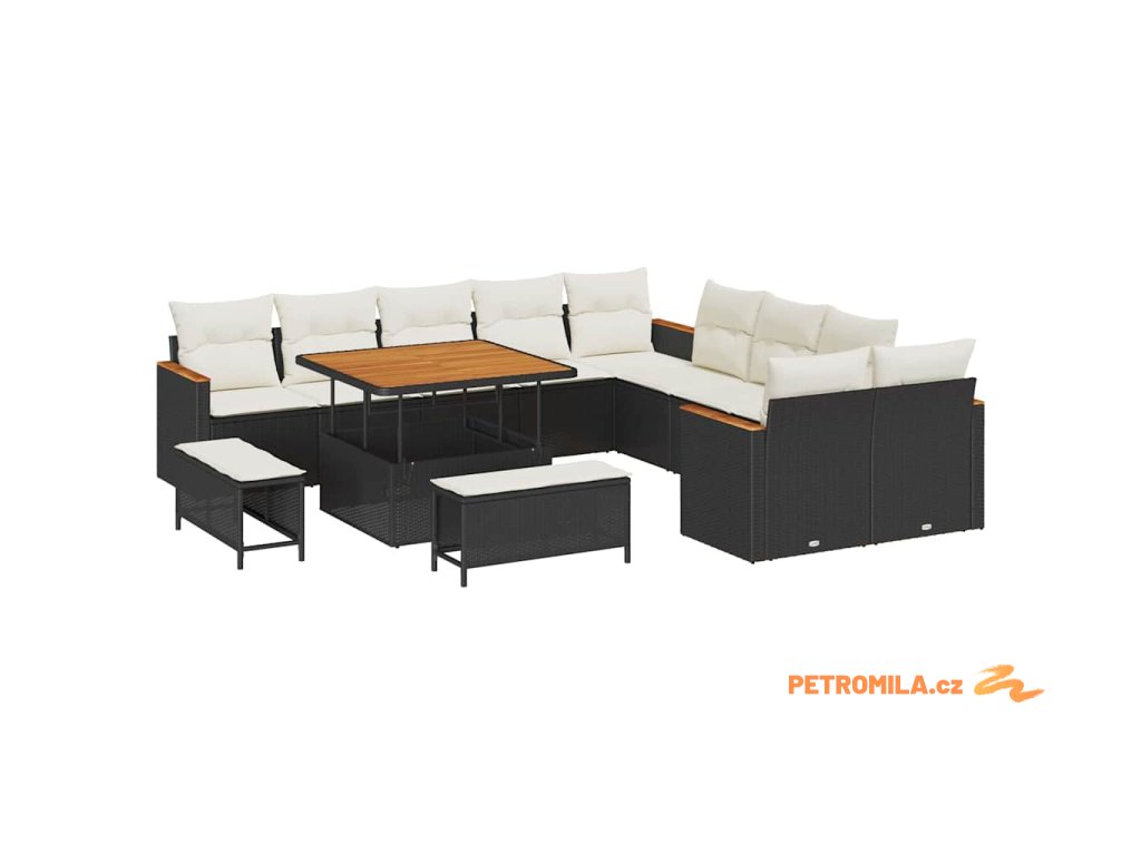 Sada zahradních pohovek s polštářem 13 pcs Černá polyratan