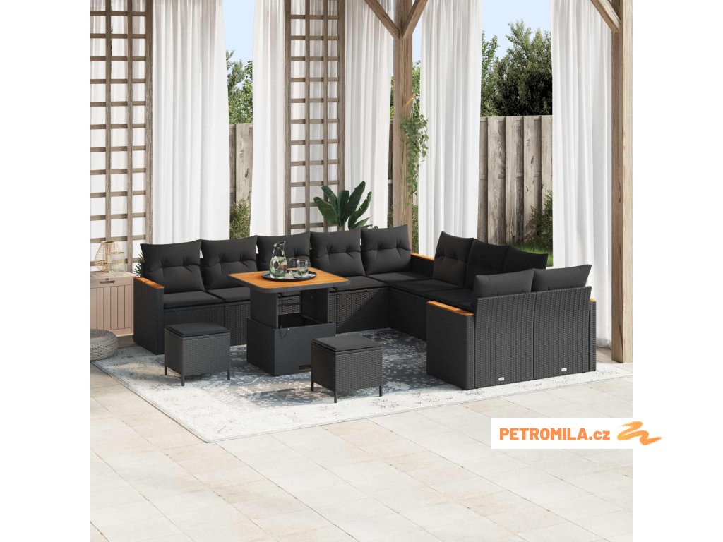 Sada zahradních pohovek s polštářem 13 pcs Černá polyratan