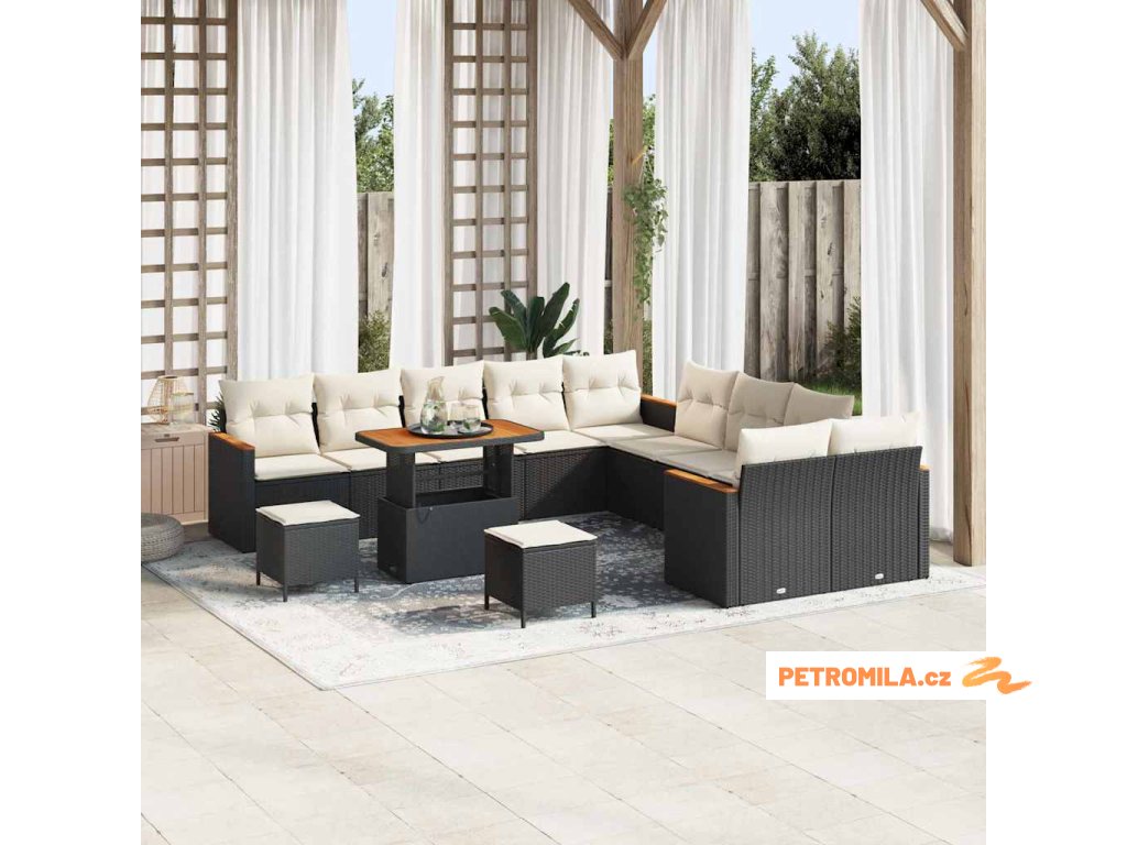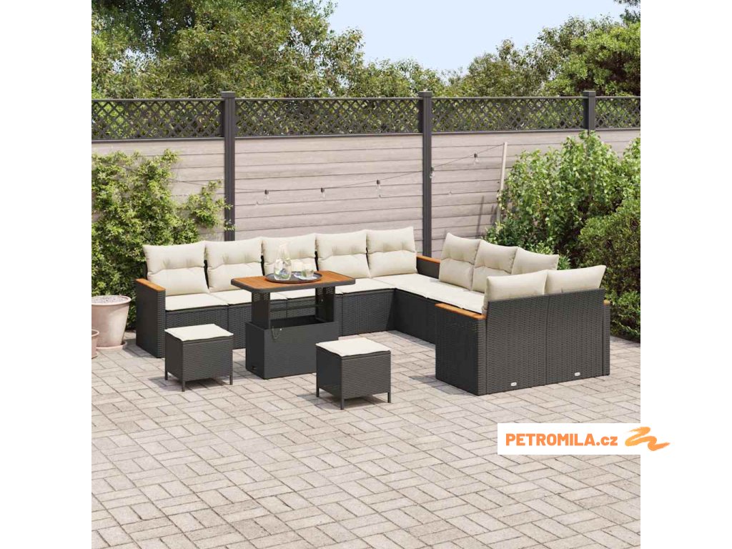 Sada zahradních pohovek s polštářem 13 pcs Černá polyratan