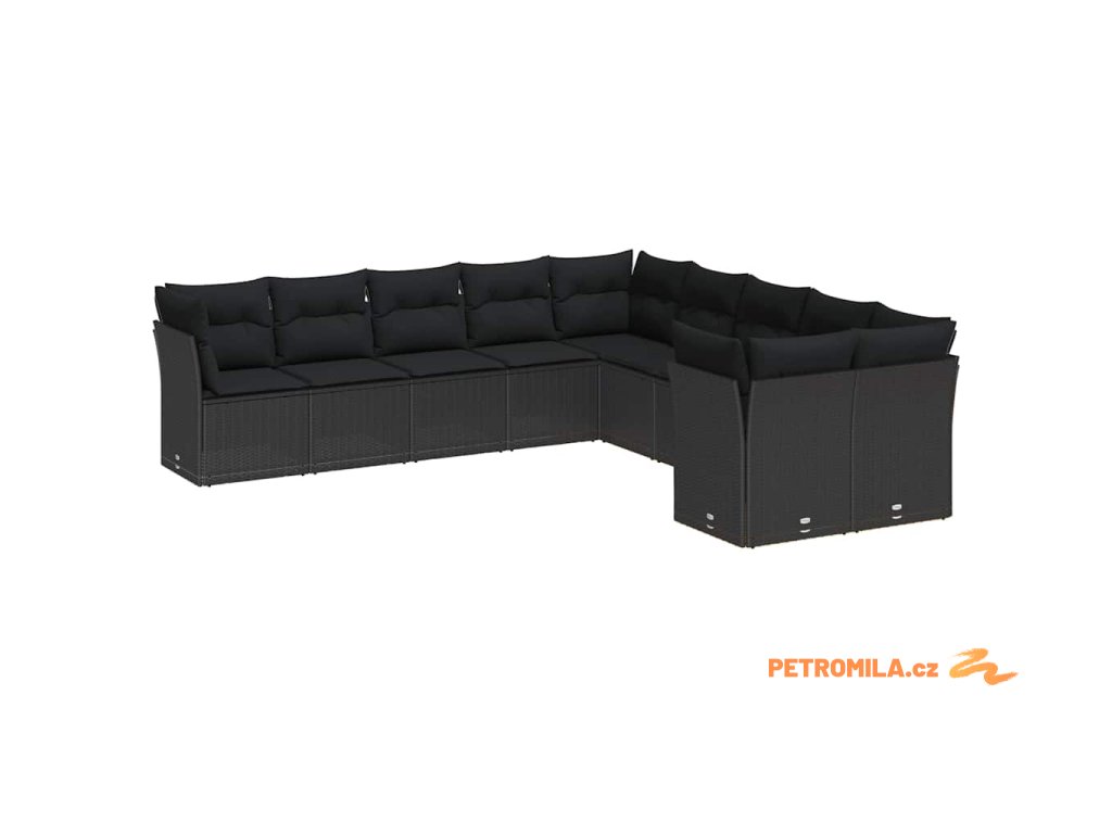 Sada zahradních pohovek s polštářem 9 pcs Černá Poly ratan