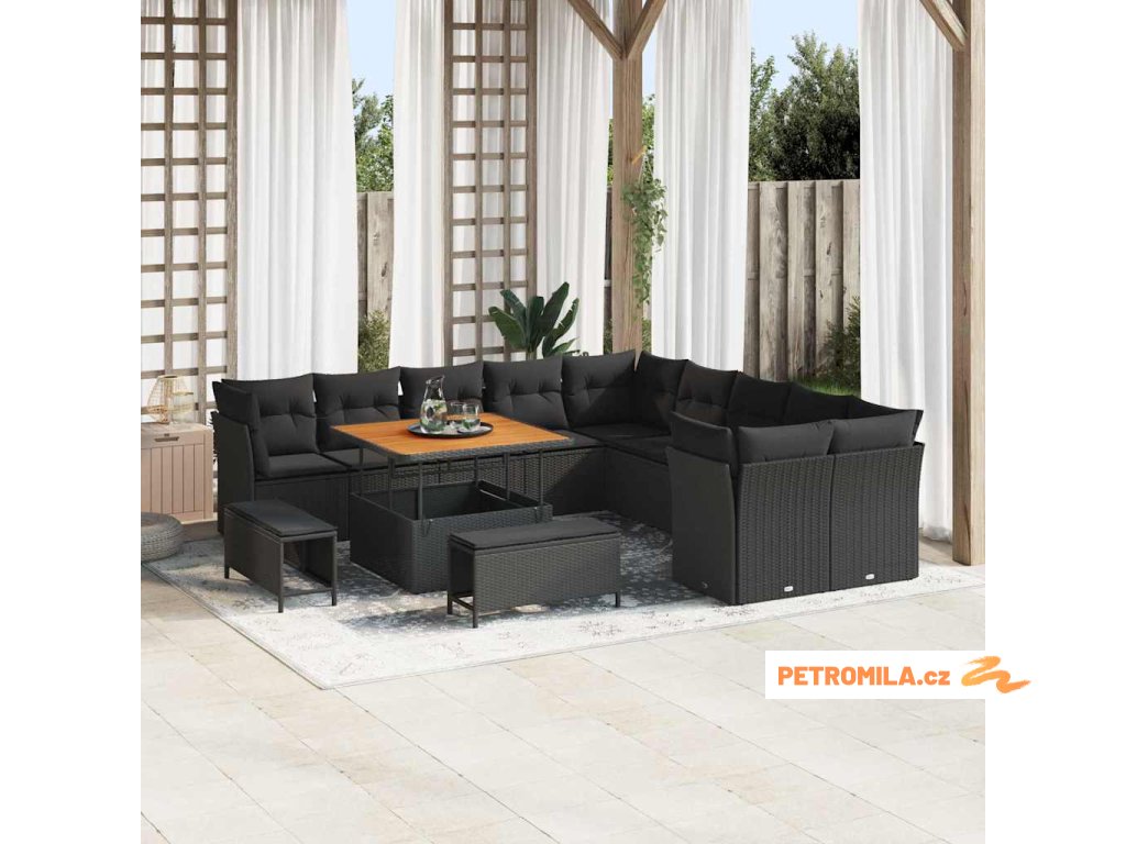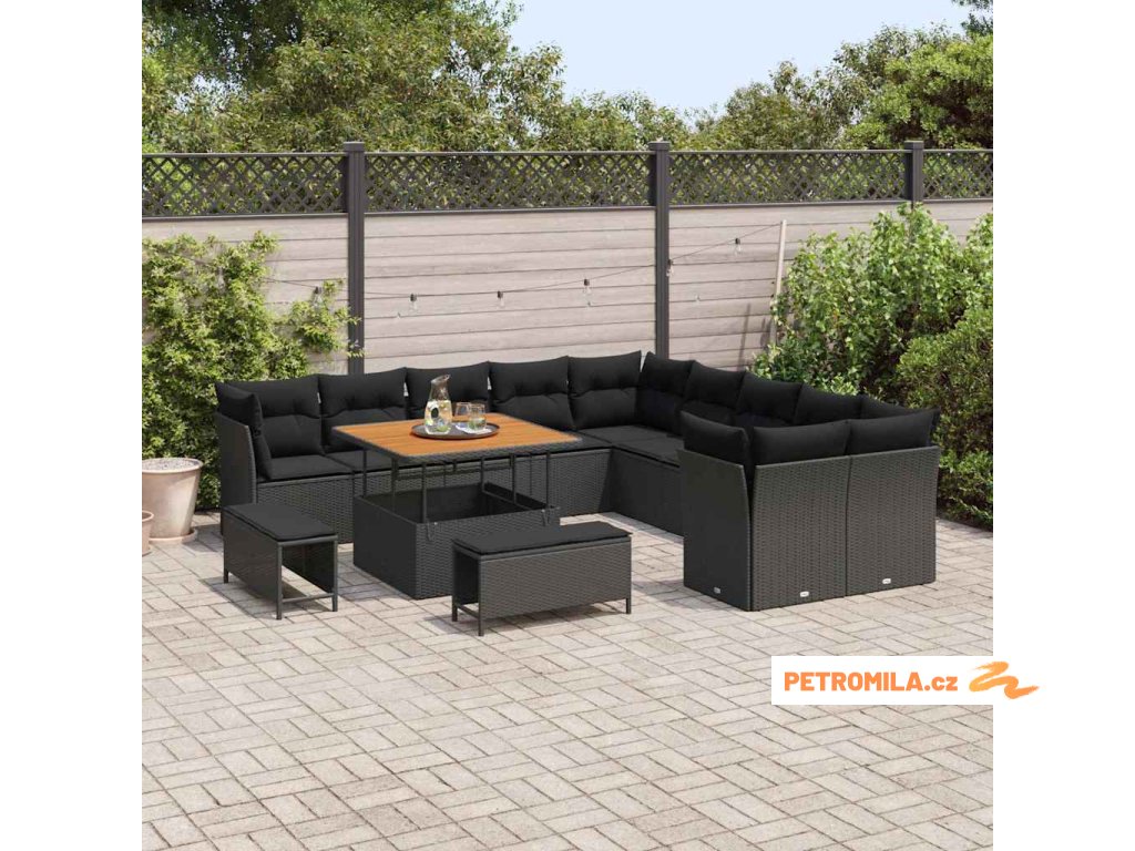 Sada zahradních pohovek s polštářem 13 pcs Černá polyratan