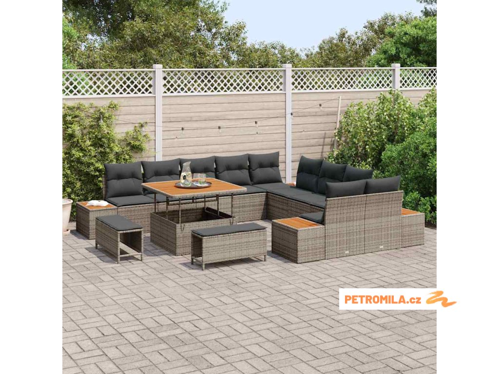 Sada zahradních pohovek s polštářem 13 pcs Šedá Poly ratan