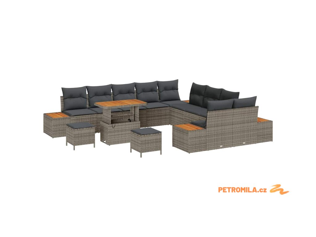 Sada zahradních pohovek s polštářem 13 pcs Šedá Poly ratan