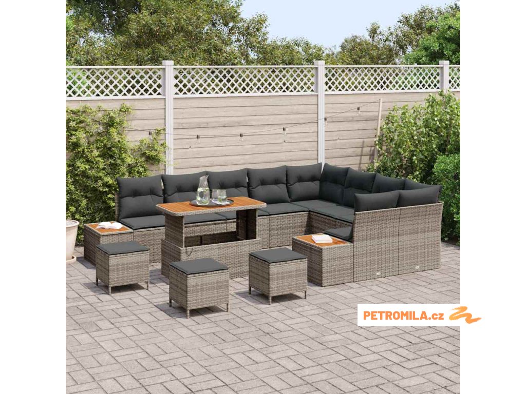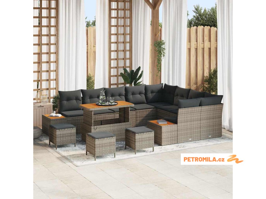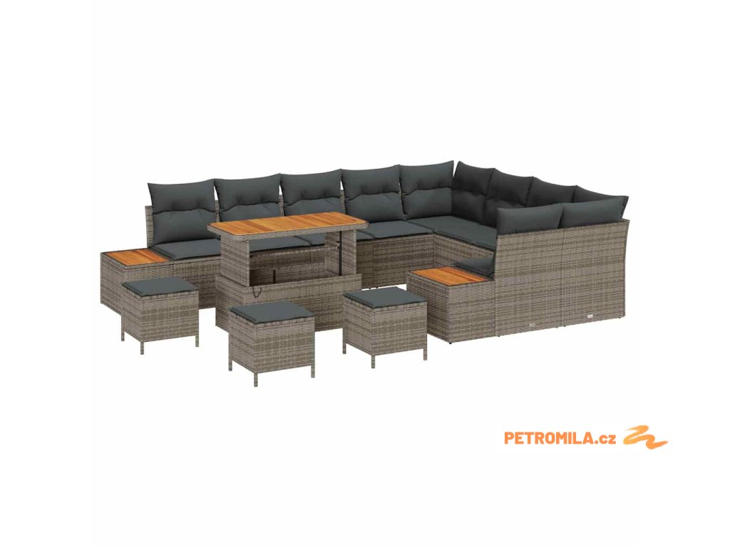 Sada zahradních pohovek s polštářem 13 pcs Šedá Poly ratan