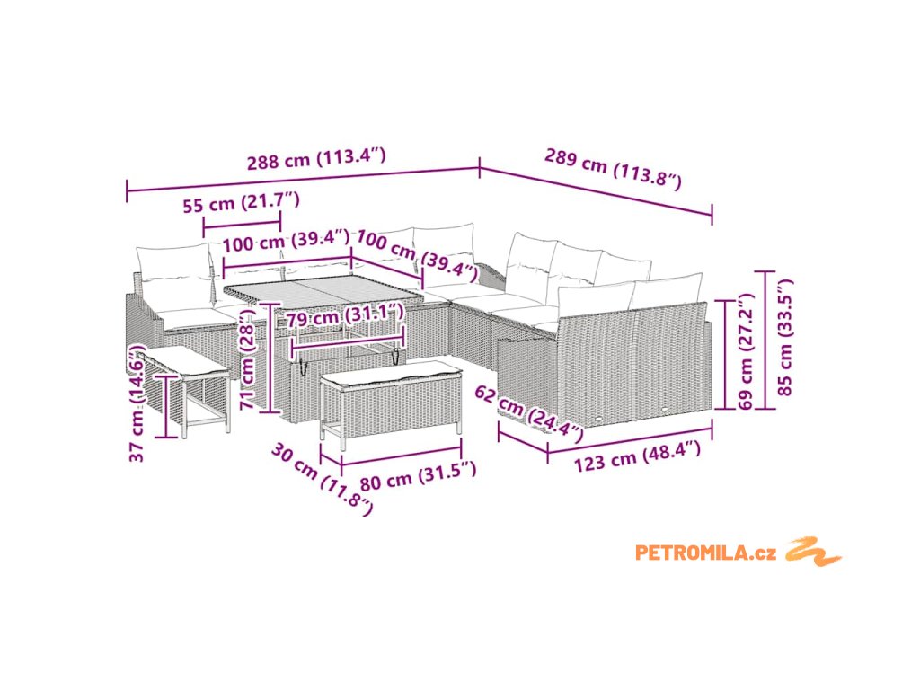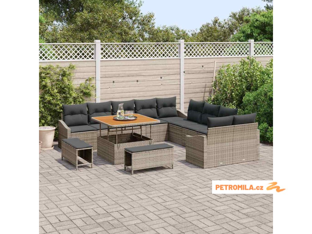 Sada zahradních pohovek s polštářem 13 pcs Šedá Poly ratan