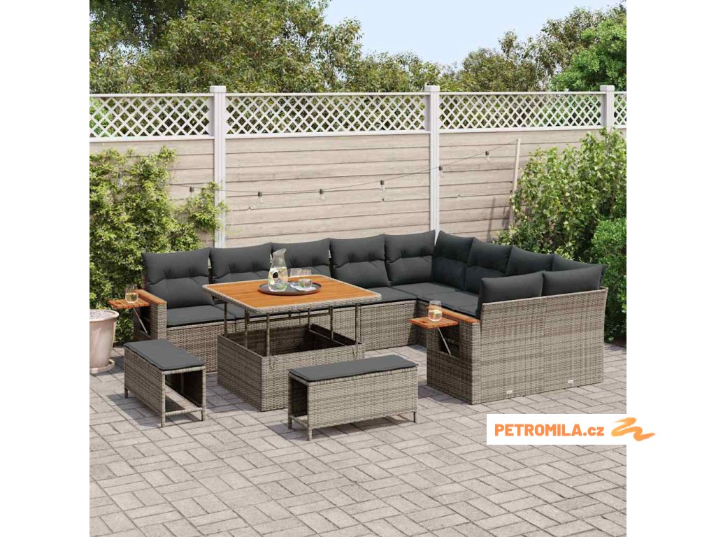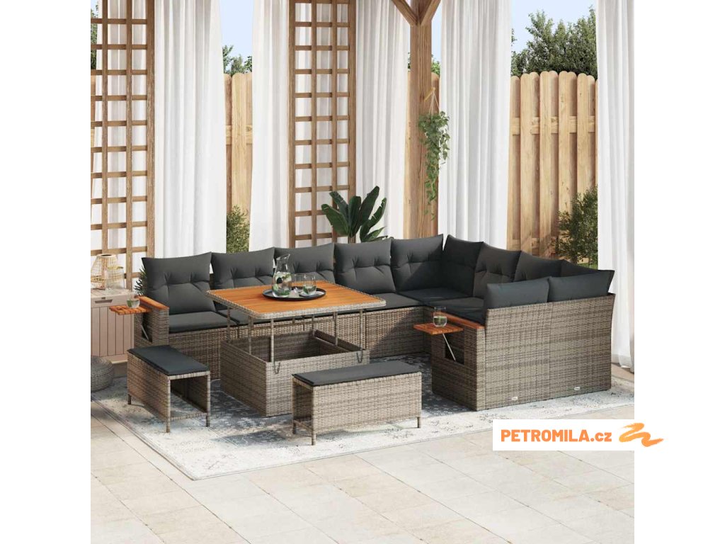 Sada zahradních pohovek s polštářem 13 pcs Šedá polyratan