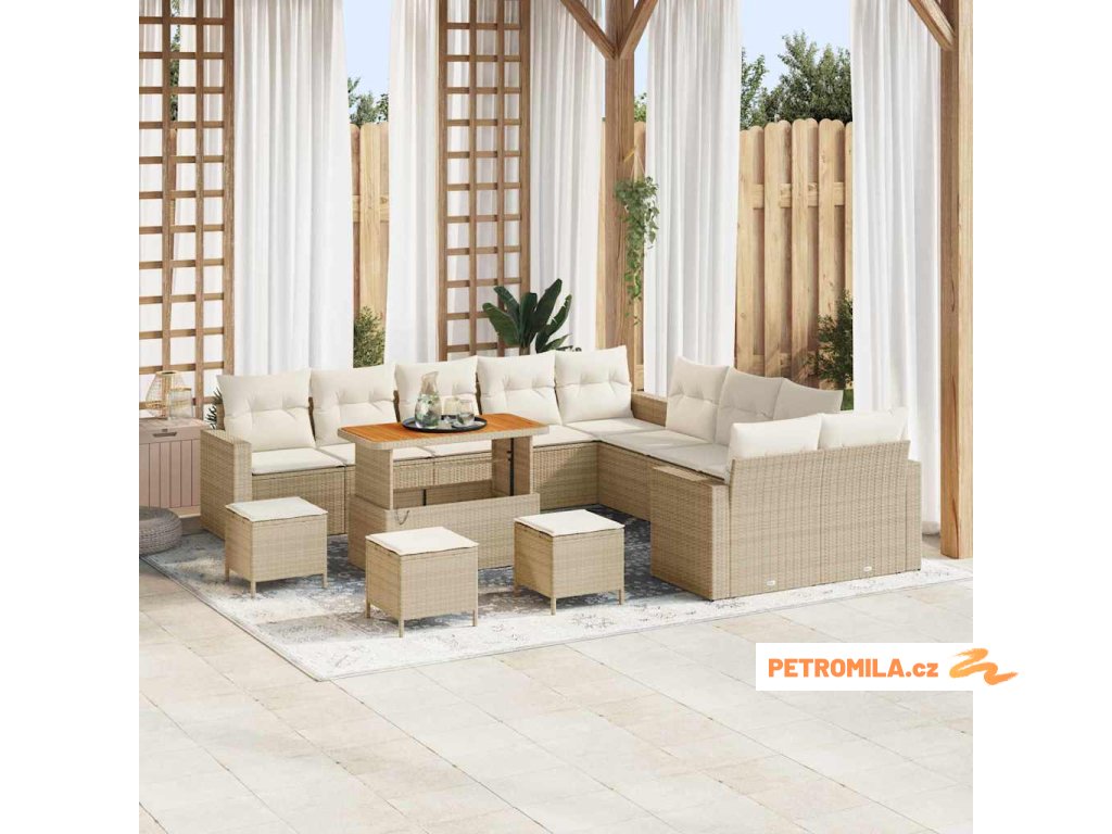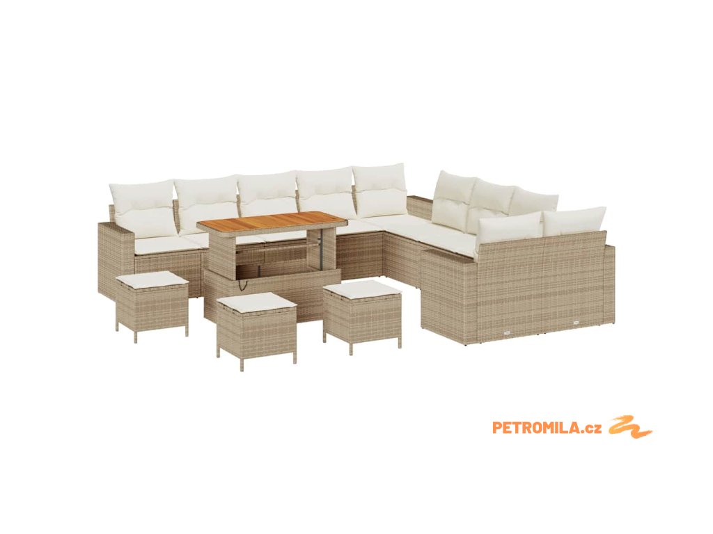 Sada zahradních pohovek s polštářem 14 pcs béžová a krémová