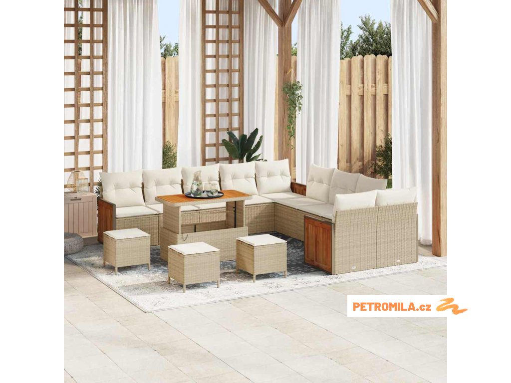 Sada zahradních pohovek s polštářem 14 pcs béžová a krémová