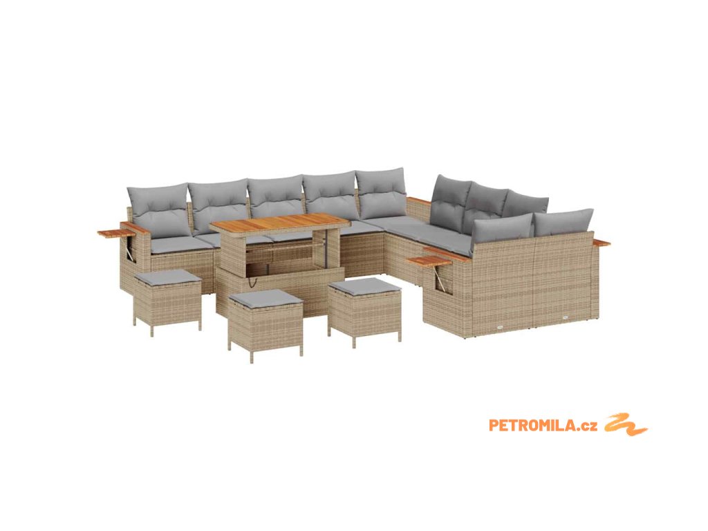 Sada zahradních pohovek s polštářem 14 pcs béžová a světle šedá