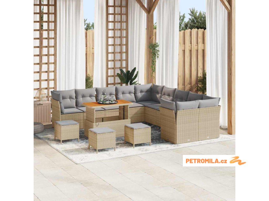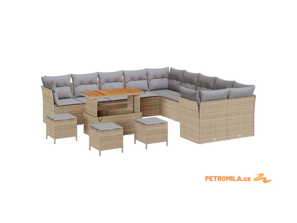 Sada zahradních pohovek s polštářem 14 pcs béžová a světle šedá