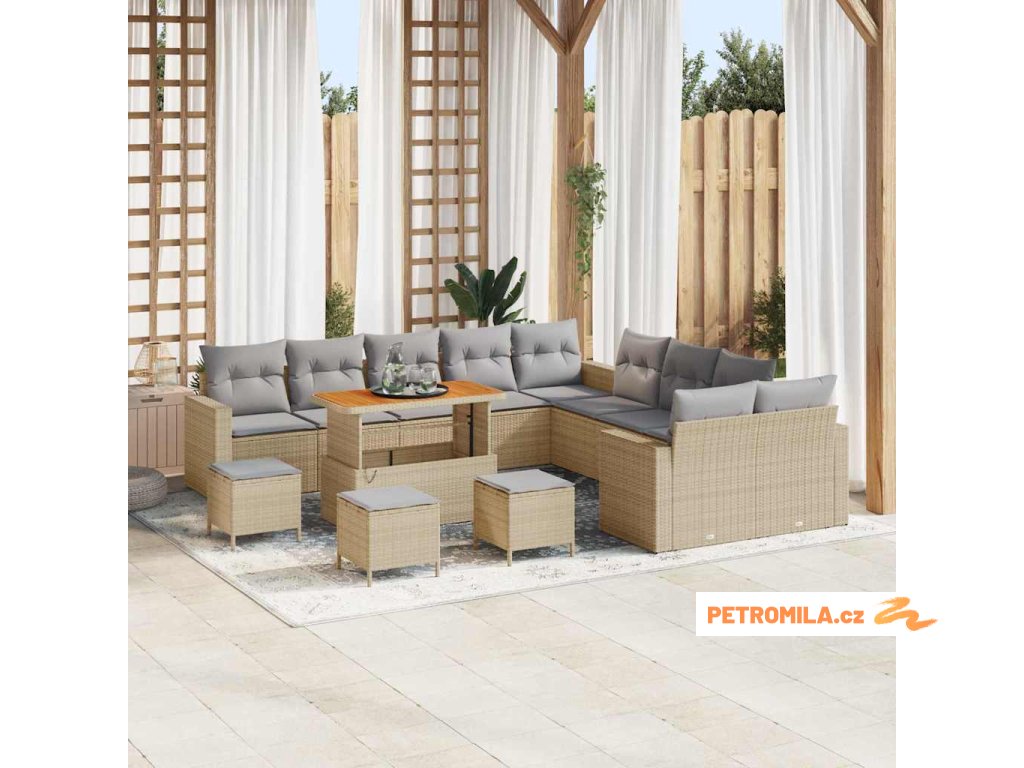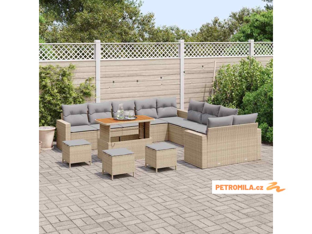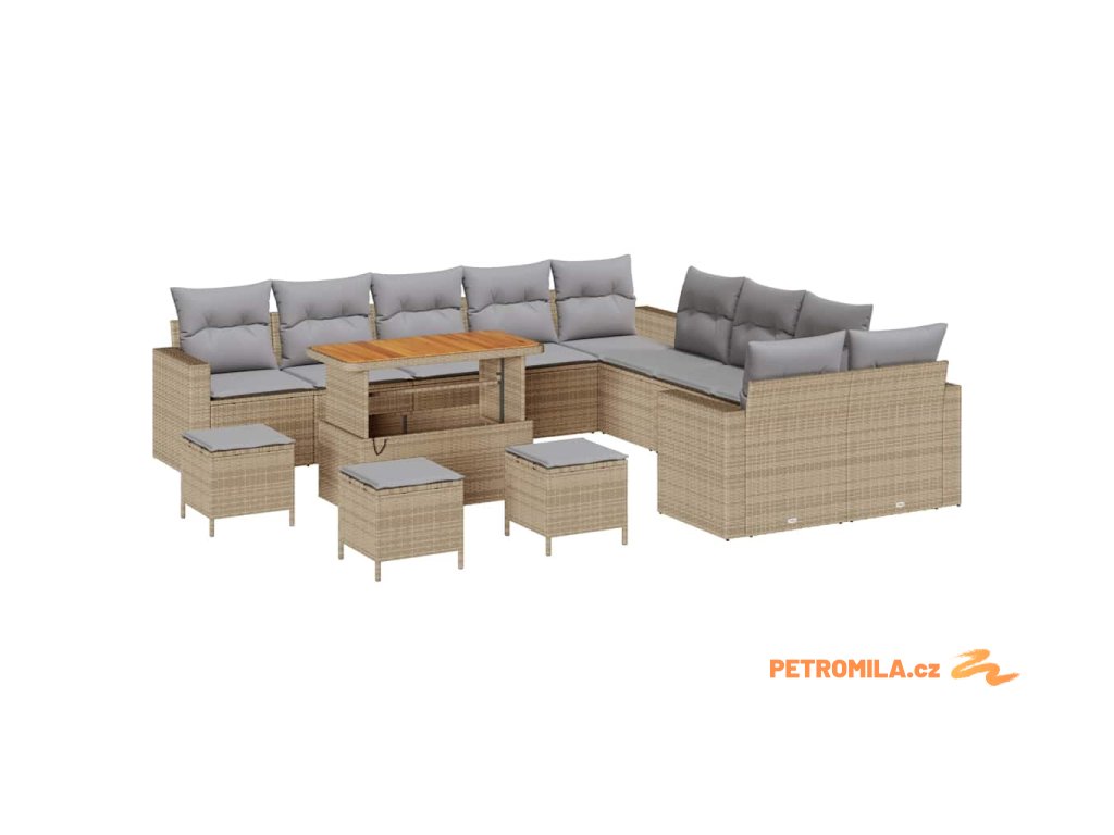Sada zahradních pohovek s polštářem 14 pcs béžová a světle šedá