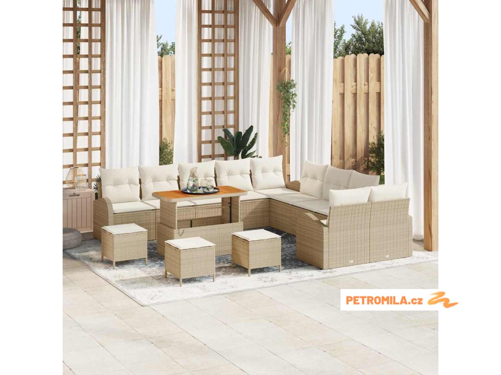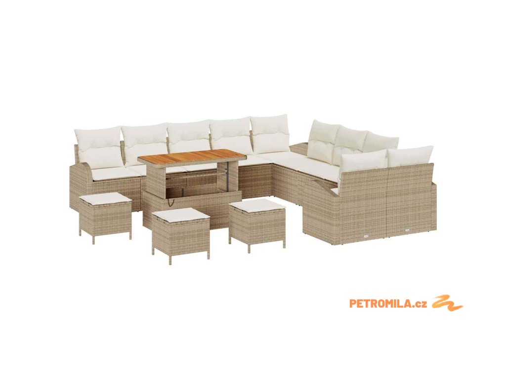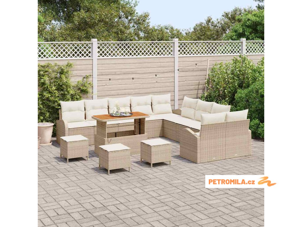 Sada zahradních pohovek s polštářem 14 pcs Béžová Poly ratan