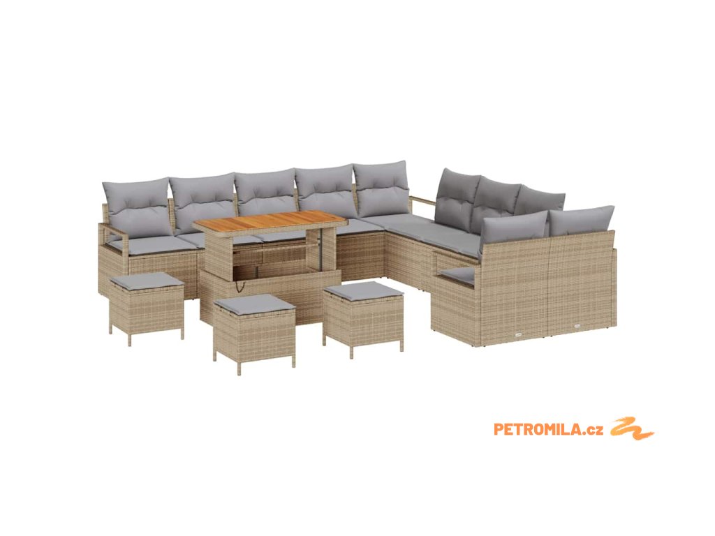 Sada zahradních pohovek s polštářem 14 pcs Béžová Poly ratan