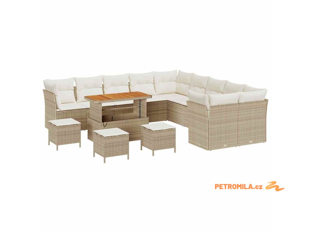 Sada zahradních pohovek s polštářem 14 pcs Béžová polyratan