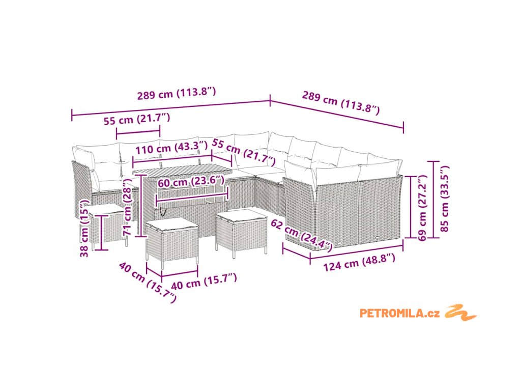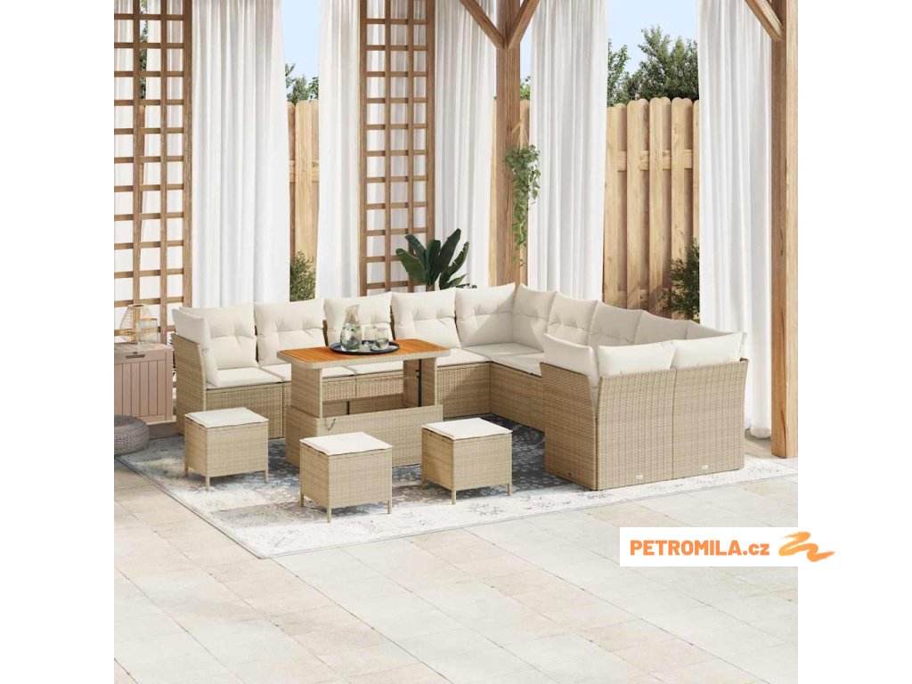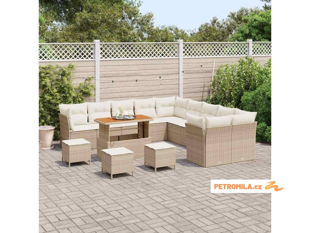 Sada zahradních pohovek s polštářem 12 pcs Béžová Poly ratan