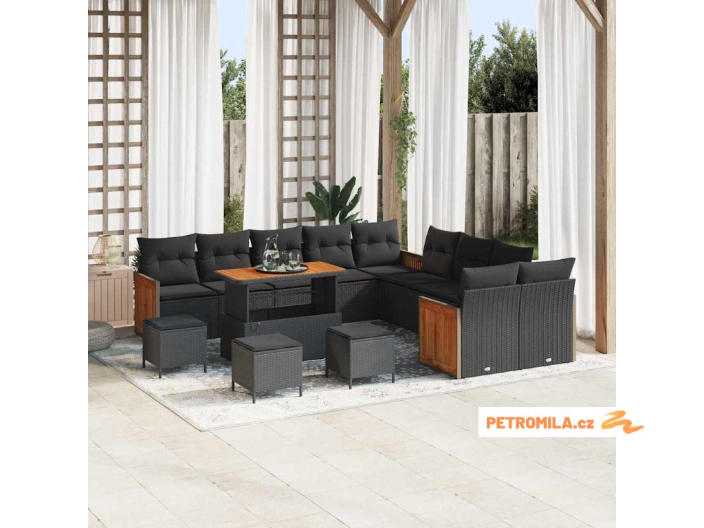 Sada zahradních pohovek s polštářem 14 pcs Černá