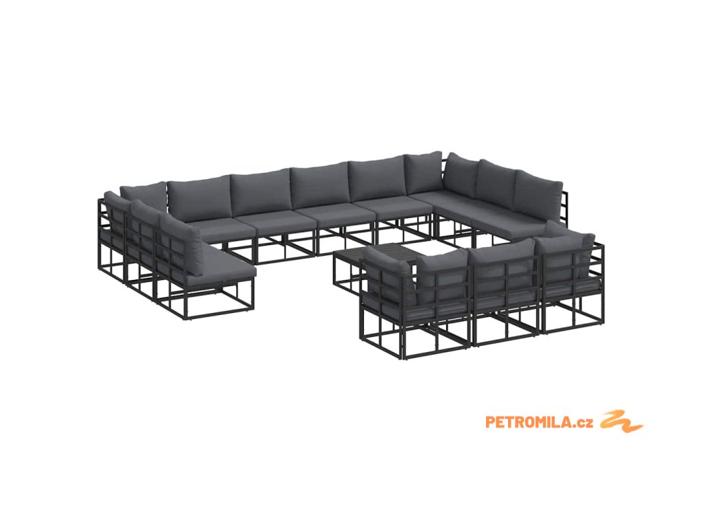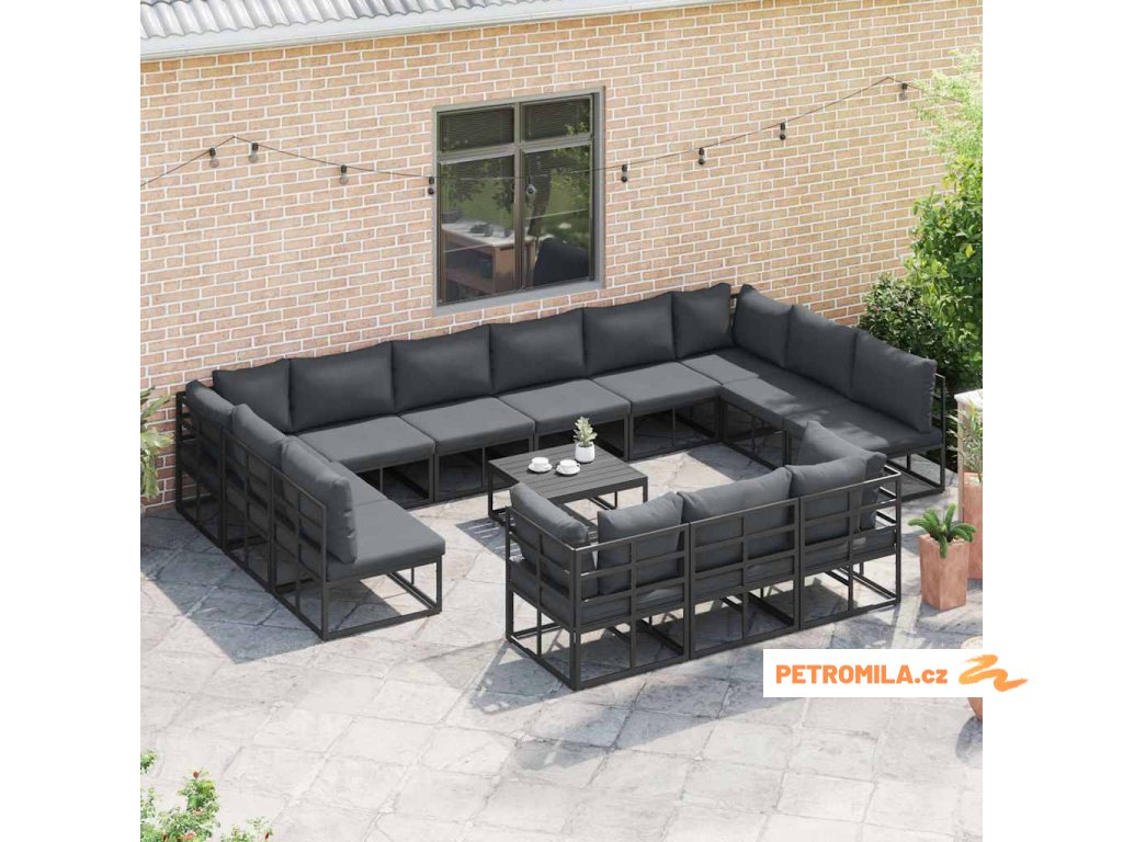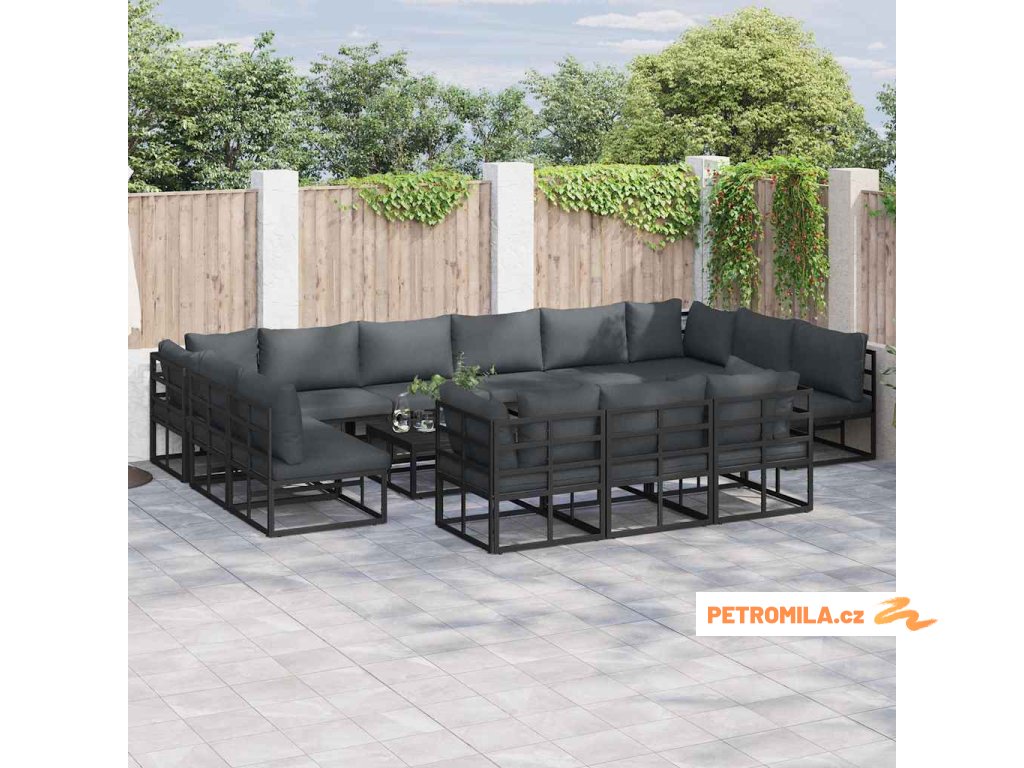 Sada zahradních pohovek s polštářem 14 pcs Černá Hliník