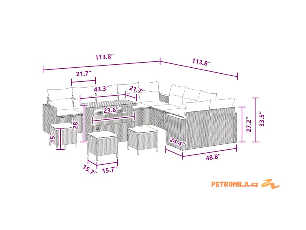 - Údržba: Aby set vypadal skvěle, přeneste polštáře dovnitř, když bude špatné počasí, používejte ochranné kryty, když není v provozu, a utřete ho vlhkým hadříkem k údržbě.