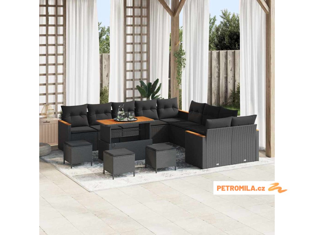 Sada zahradních pohovek s polštářem 14 pcs Černá Poly ratan