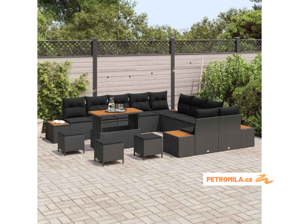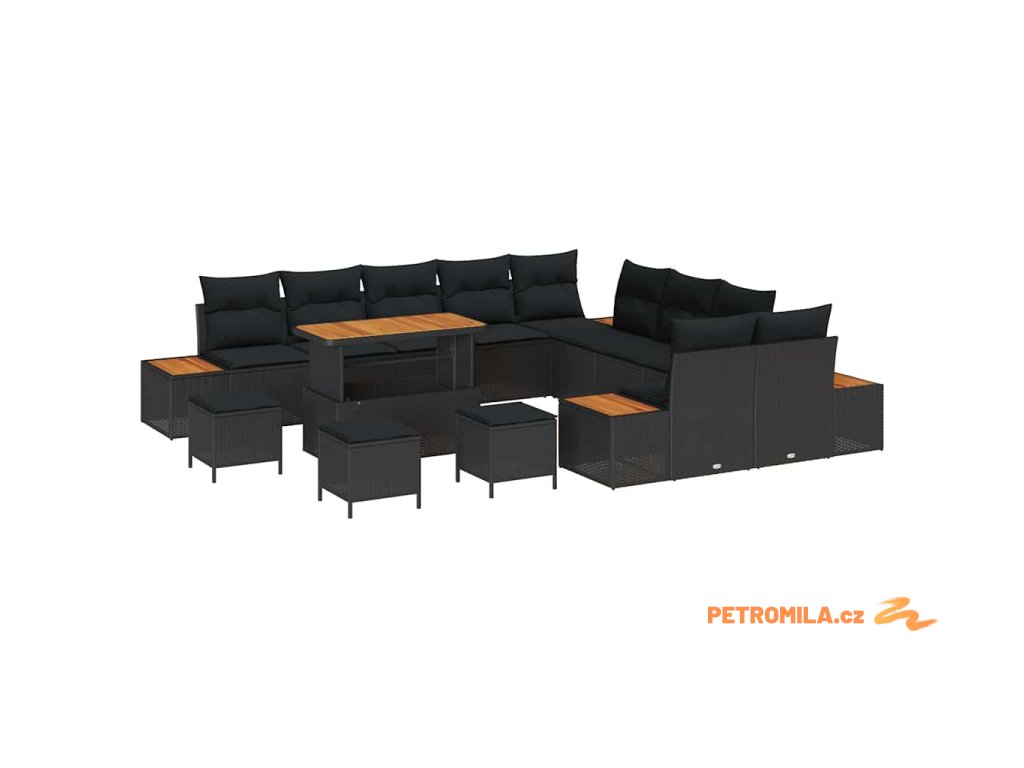 Sada zahradních pohovek s polštářem 14 pcs Černá Poly ratan