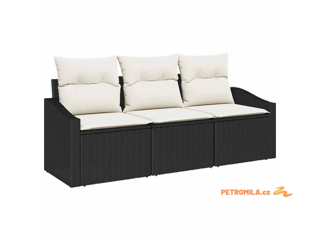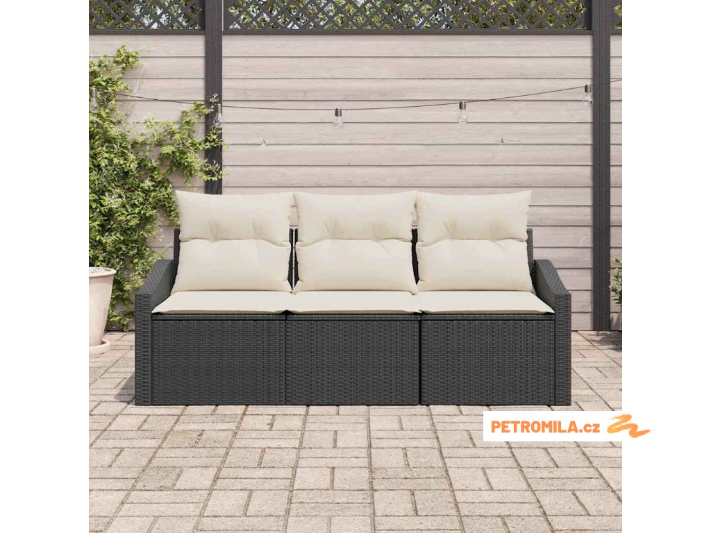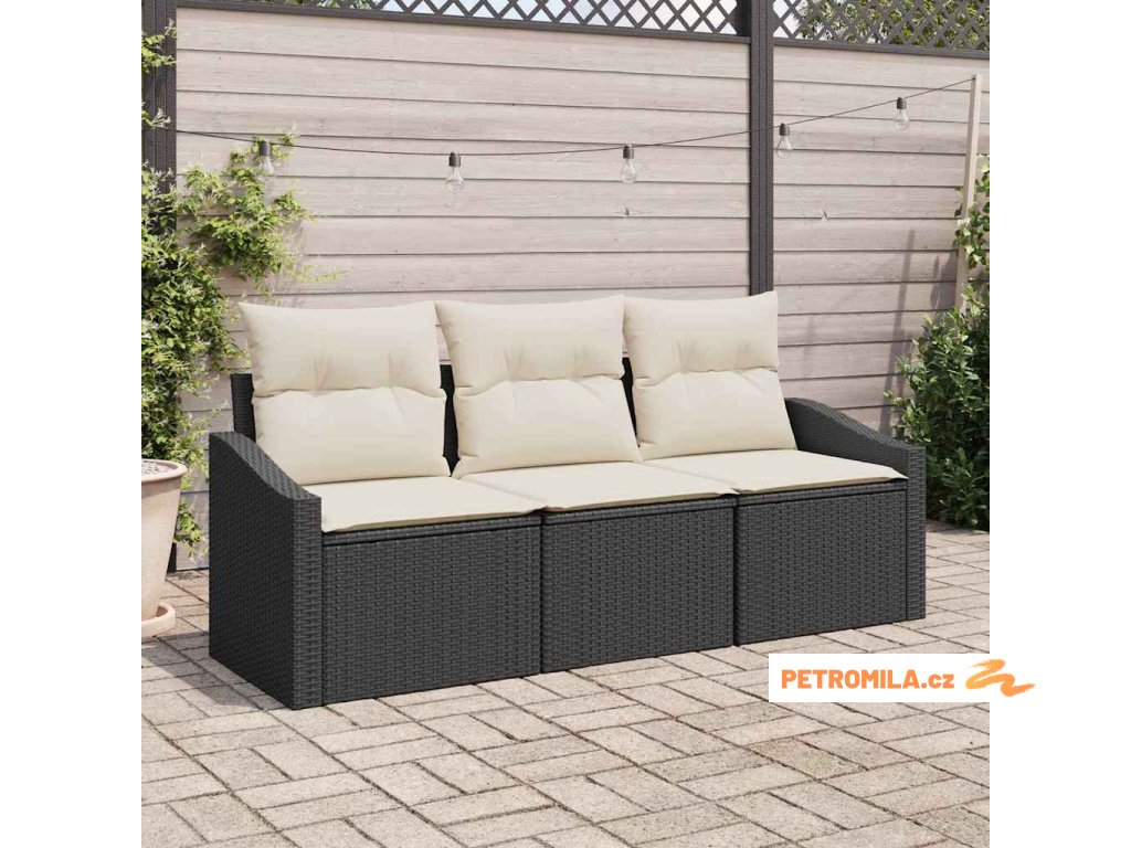 Sada zahradních pohovek s polštářem 3 pcs Černá a krémová
