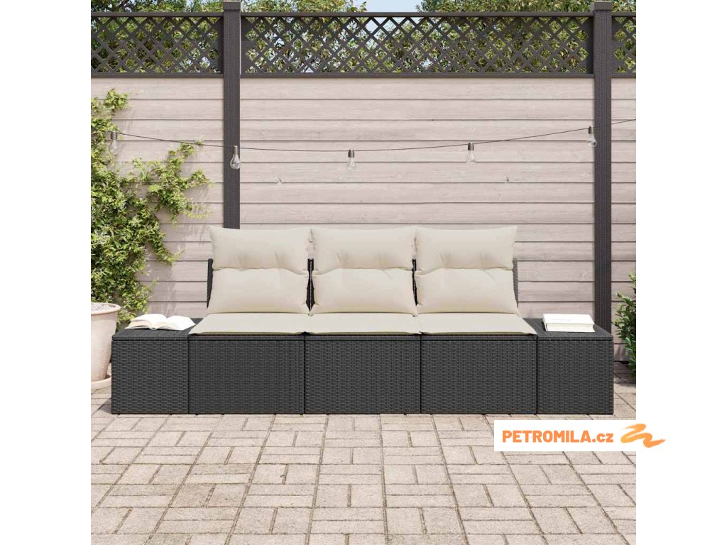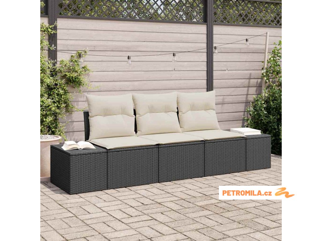 Sada zahradních pohovek s polštářem 3 pcs Černá a krémová