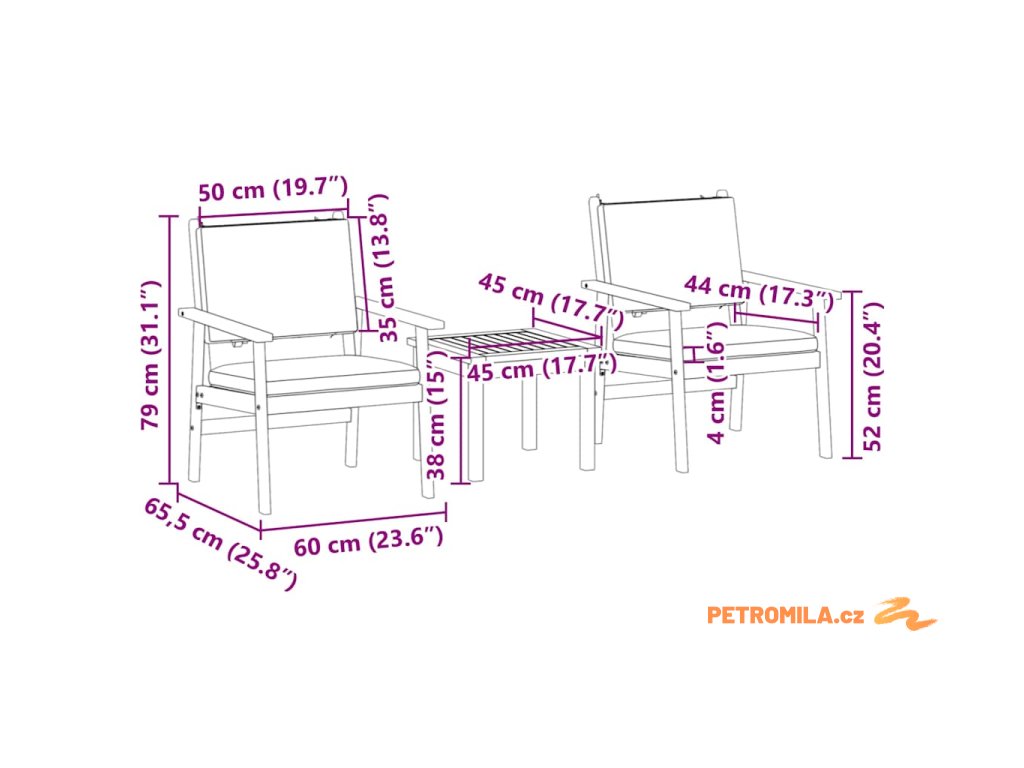 Sada zahradních pohovek s polštářem 3 pcs Hnědá 45 x 45 x 38cm