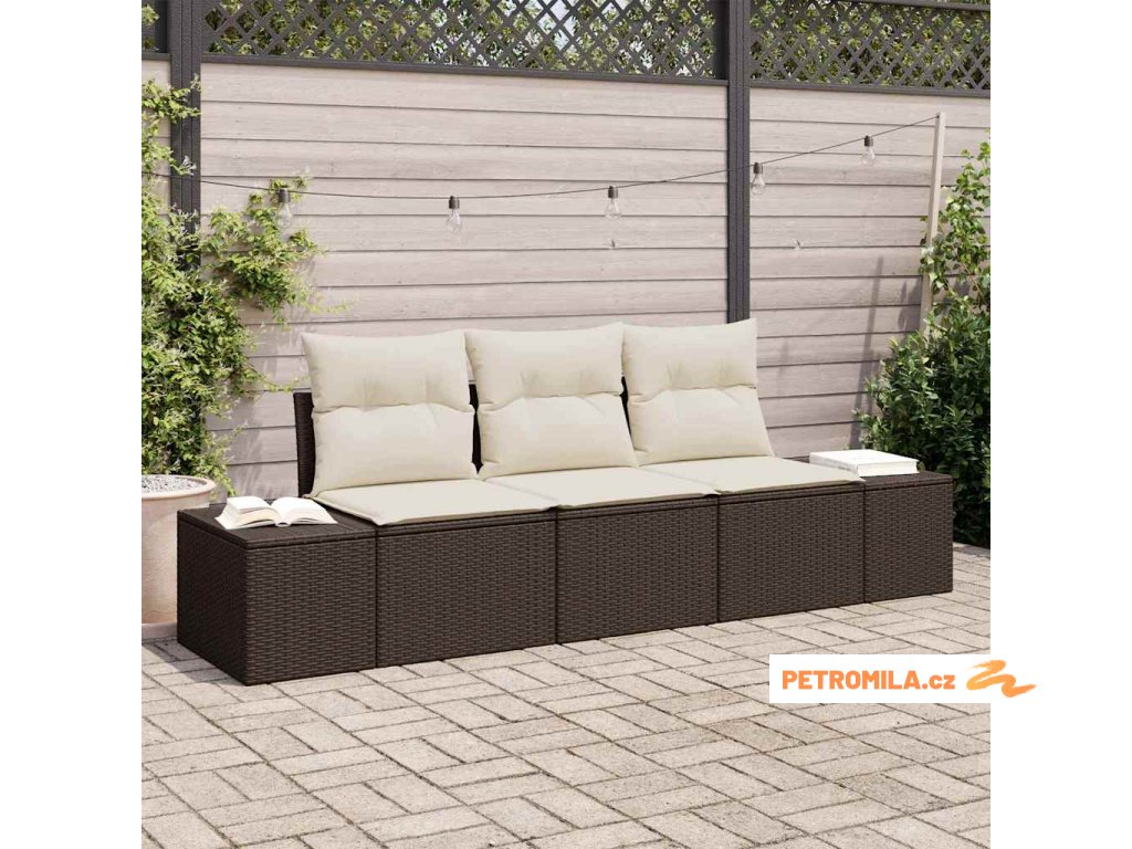 Sada zahradních pohovek s polštářem 3 pcs Hnědá a krémová