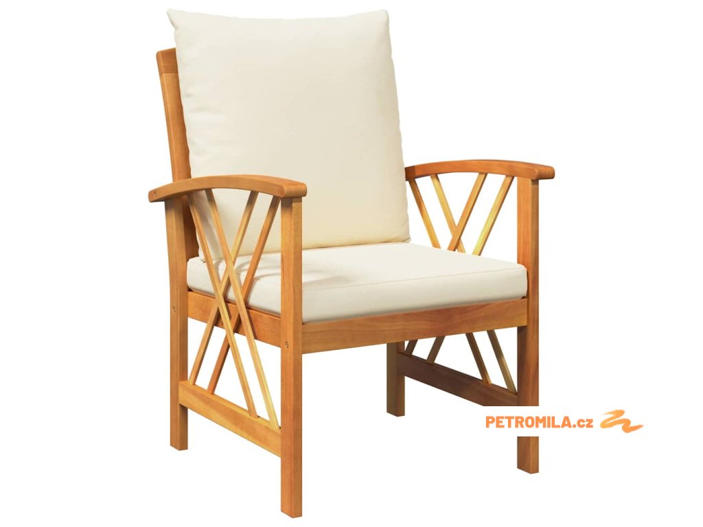 - Praktické opěrky: Opěrky vyrobené z akáciového dřeva dodávají styl a zajišťují pohodlnou oporu pro dlouhé chvíle relaxace. Dokonale se hodí k celkovému designu setu.
