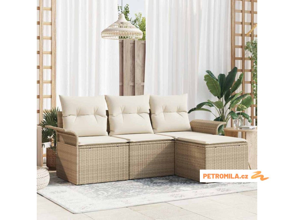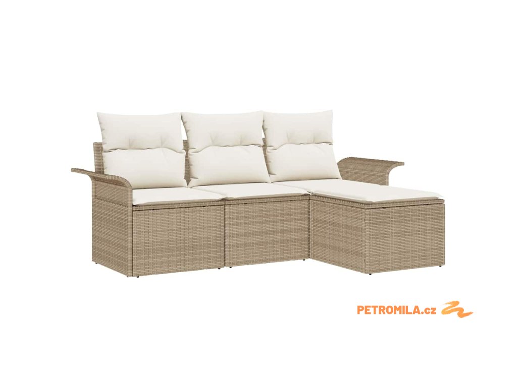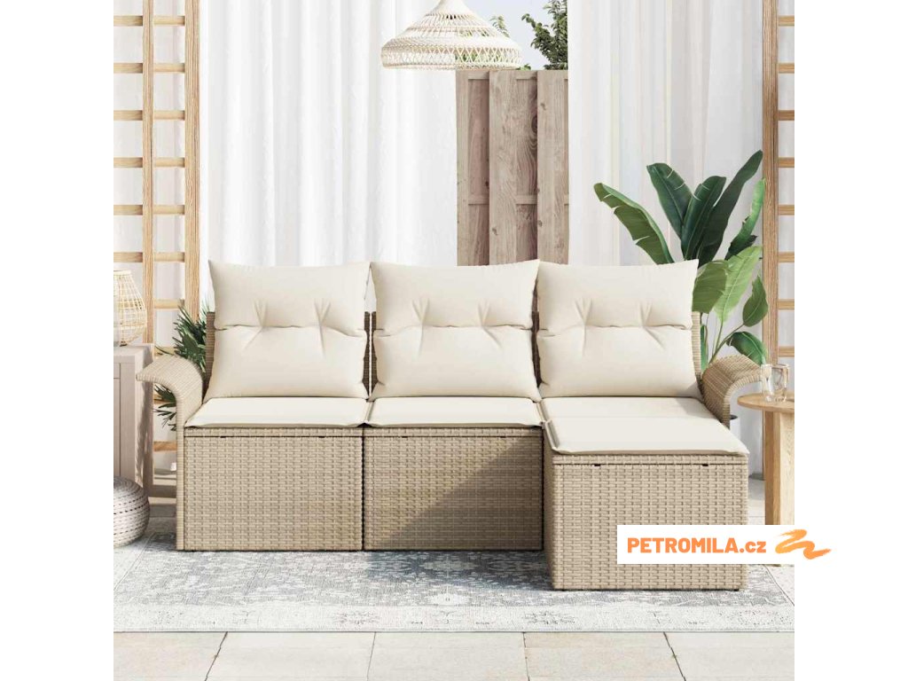 Sada zahradních pohovek s polštářem 4 pcs Béžová Poly ratan