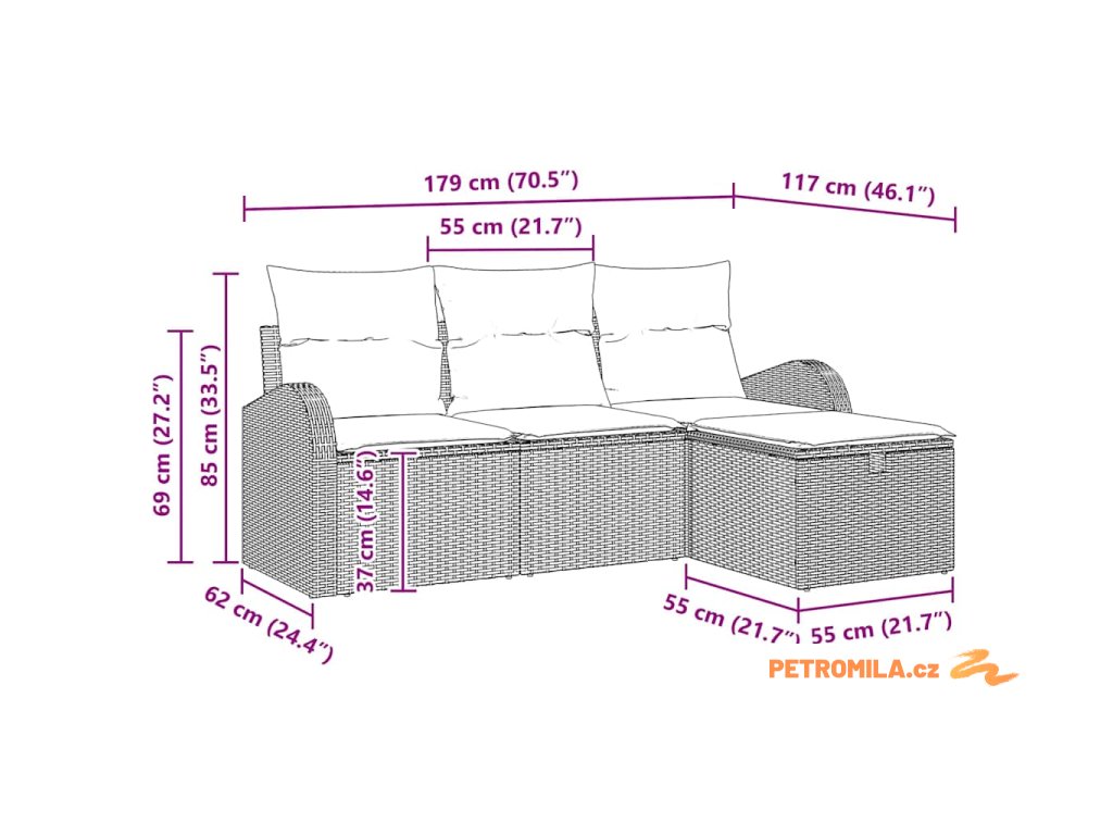 - Modulární design: Zahradní sofa set můžete snadno přetvářet, aby vyhovoval vašim potřebám sezení. Přizpůsobte si uspořádání pro různé příležitosti, což zvyšuje použitelnost, pohodlí a styl.