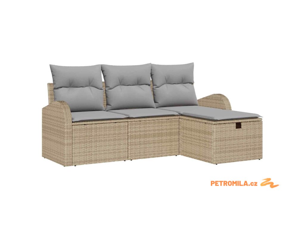 Sada zahradních pohovek s polštářem 4 pcs Béžová polyratan