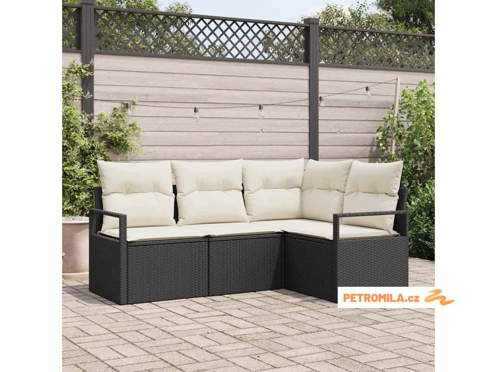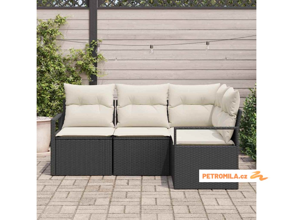 Sada zahradních pohovek s polštářem 4 pcs Černá a krémová