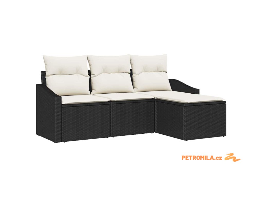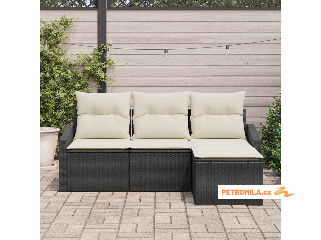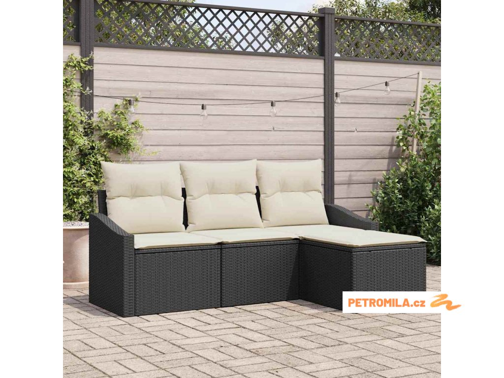 Sada zahradních pohovek s polštářem 4 pcs Černá a krémová